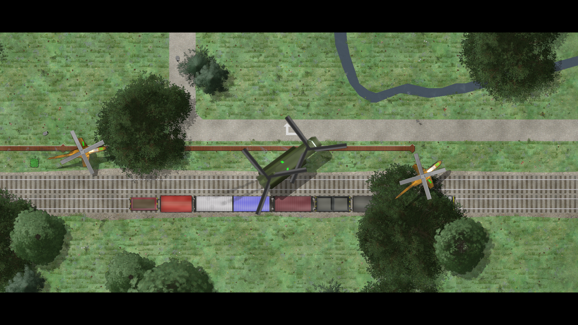 The player can choose from a range of land vehicles (other objects are just props).